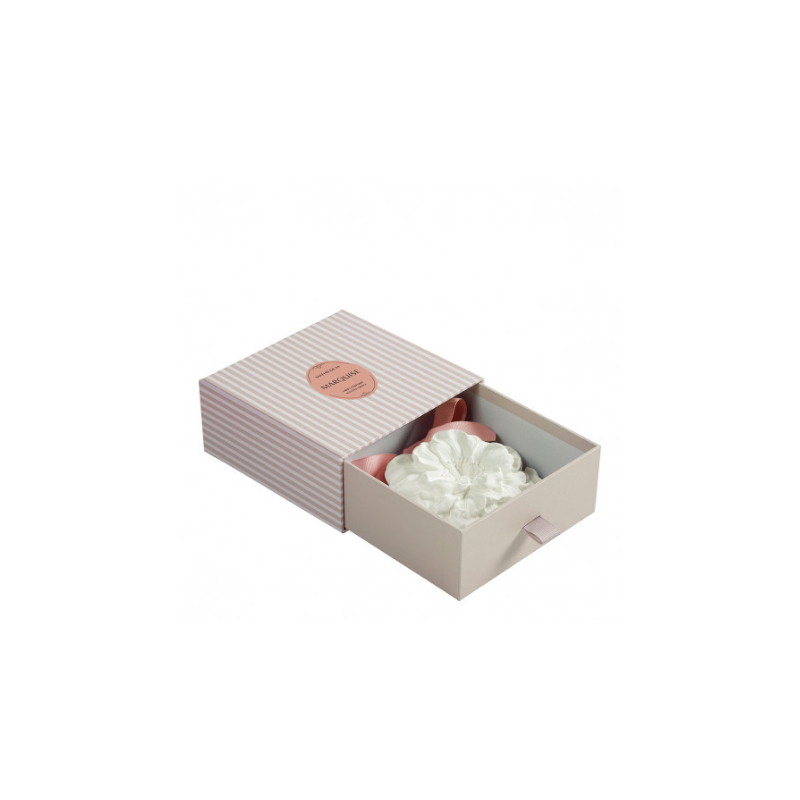 Entièrement réalisée à la main, cette fleur en plâtre parfume délicatement et pour longtemps tous les petits espaces de votre maison comme les armoires, tiroirs ou bagages. Posée dans une coupelle sur une table, elle se transforme en véritable objet précieux décoratif.