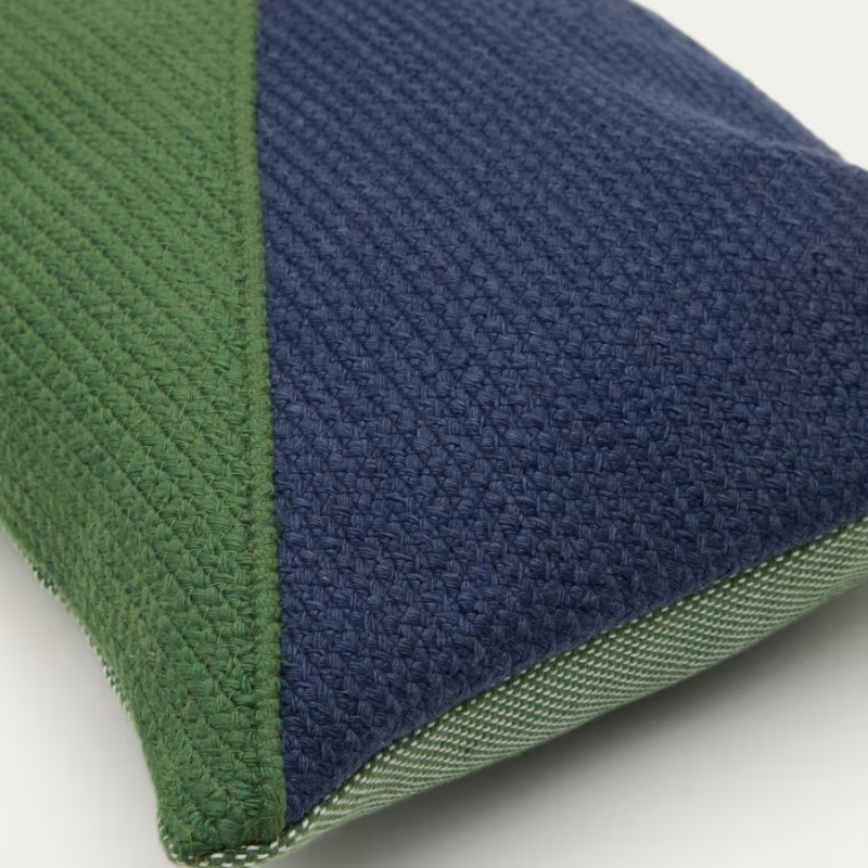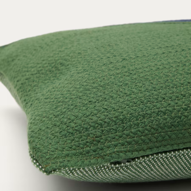 Housse de coussin tissée à la main, fabriquée avec des fibres 100% PET recyclé.