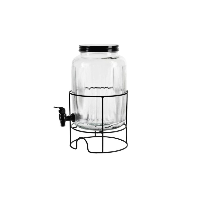 Alliant élégance, fiabilité et fonctionnalité, le bocal à robinet est parfait pour servir vos boissons lors de réunions de famille, garden-parties ou un usage quotidien. Placé sur son support en métal stable, il offre confort, praticité et style à votre table ou buffet. Avec sa grande capacité de 5,2 litres, il est idéal pour limonade, sangria, compotes maison ou eaux aromatisées, sans avoir besoin de remplissage constant. Le robinet intégré permet de servir facilement et avec précision, même lorsque le bocal est plein, sans lever ni incliner le récipient. Le support en métal assure la hauteur idéale pour verser vos boissons tout en ajoutant élégance et stabilité. Fabriqué en verre de haute qualité, ce bocal est neutre en parfum et en saveur, préservant pleinement le goût de vos boissons maison.
