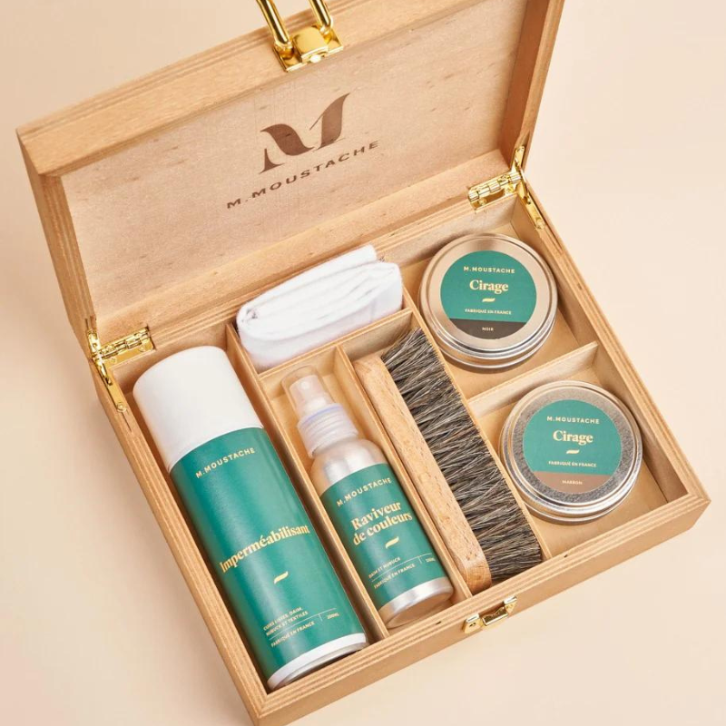 Avoir de belles chaussures, c’est bien pouvoir les entretenir, c’est mieux ! Alors prenez en soin, elles vous le rendront. Spécialement, pour vous, nous avons concocté un kit pour chouchouter vos chaussures dans une belle boite en bois. Pour offrir ou à s’offrir ce coffret sera utile et il fera plaisir en toute occasion.