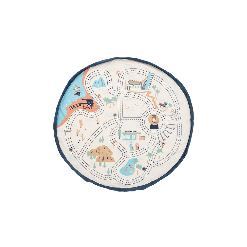 Un tapis de jeux qui se transforme en un sac à jouets nomade. Parce que les enfants aiment jouer avec leurs jouets partout où ils vont, la marque belge Play and Go a imaginé cet innovant sac de rangement tapis de jeux. Très résistant, imperméable, le tapis rond en polycoton L.A Roadmap est très pratique. Une fois replié, ce grand tapis de jeux de 140 cm de diamètre, se transforme en un rangement astucieux pour les jouets de vos enfants. Ne perdez plus de temps à rassembler et ranger les legos, poupées ou voitures. Tirez sur les cordons coulissants et le tour est joué ! Léger et facile à transporter, le sac Play and Go est idéal pour les sorties en famille à la plage, au parc, en vacances …