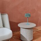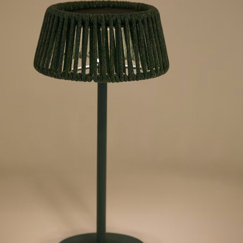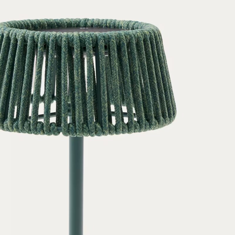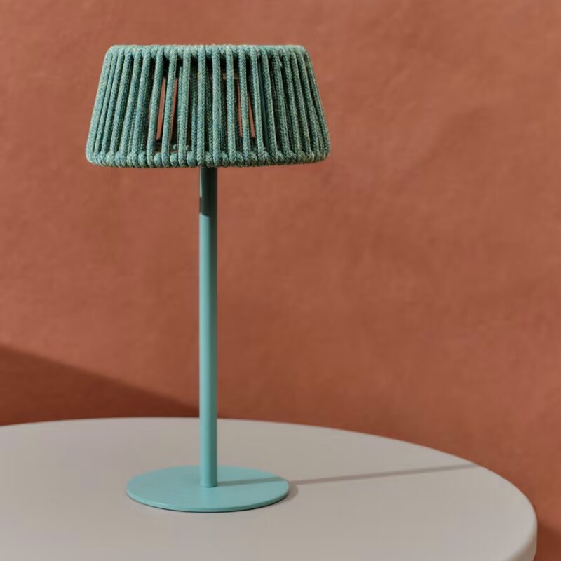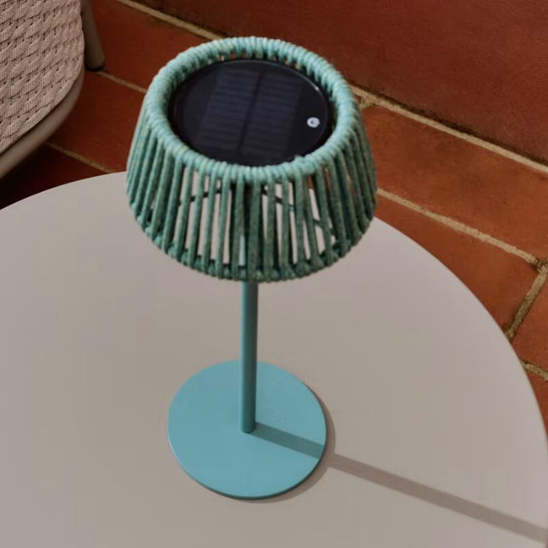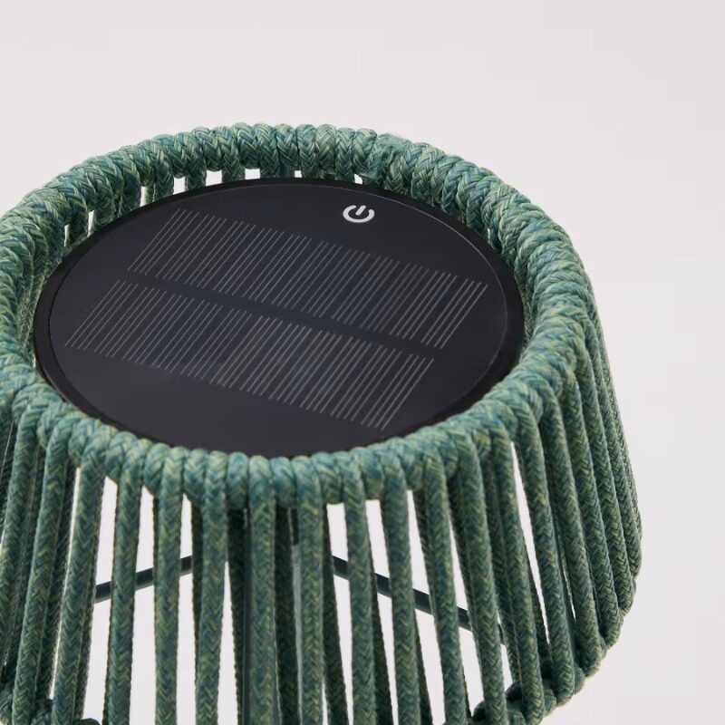 Lampe de table solaire d’extérieur Aldet en corde turquoise
