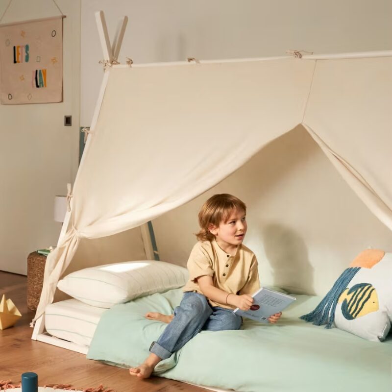 La meilleure façon de booster l’imagination de votre enfant ? Ce lit tipi en bois de hêtre. Son design en forme de tipi est conçu pour encourager son autonomie et ses mouvements, de façon sécurisée.