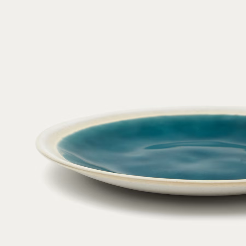 Lot de 12 assiettes Sanet en céramique bleue et blanche / 6 assiettes plates + 6 assiettes à dessert
