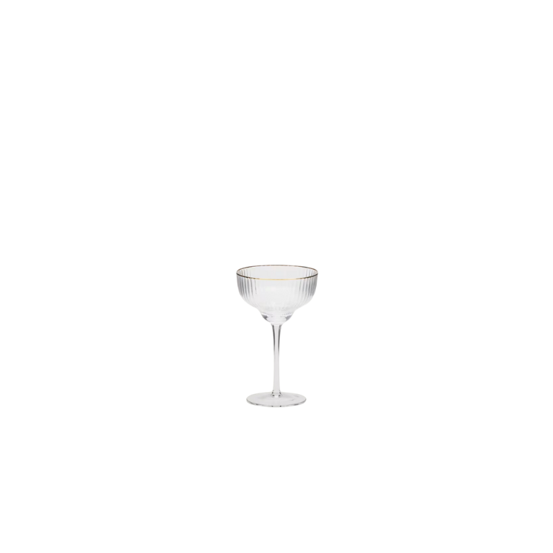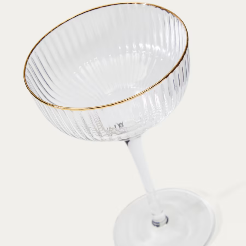 Coupe en verre transparent avec détail doré sur le bord supérieur.