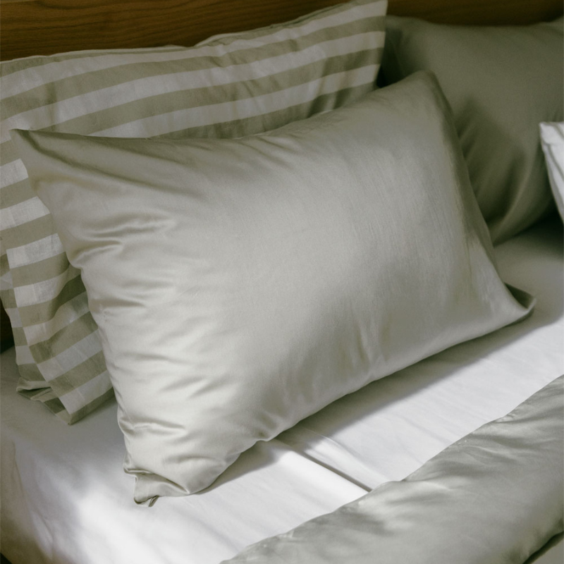 Lot de 2 taies d’oreiller 50×75 cm en satin 300 fils Sampras – Vert kaki