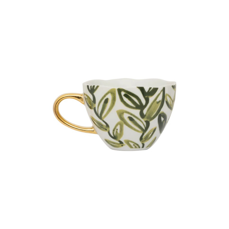 Apportez une touche de nature à vos moments de pause avec la tasse morning. Son motif de feuilles peint à la main en vert olive évoque une atmosphère apaisante et botanique. Issue de la collection Good Morning, chaque tasse transforme votre rituel quotidien en un instant élégant, sublimé par une anse dorée peinte à la main.