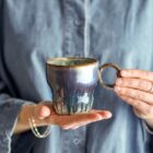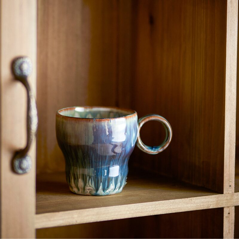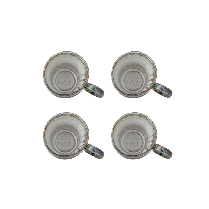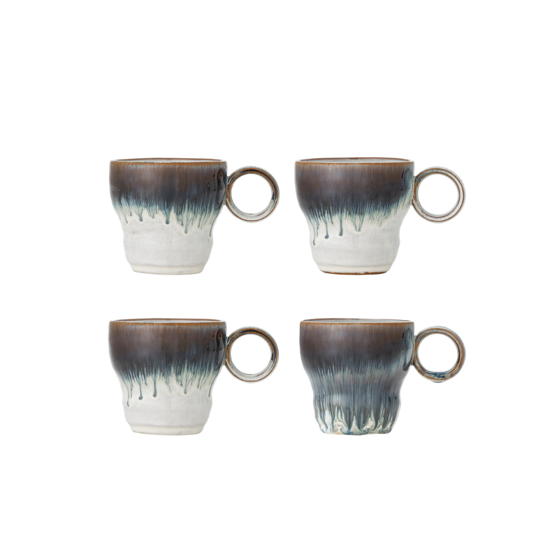 La Tasse Nigel de Bloomingville est en grès avec une glaçure réactive dans des tons bleus et sable. La surface est brillante et présente un jeu de couleurs légèrement irrégulier. La nature de la glaçure fait que chaque tasse est unique.