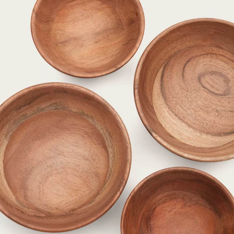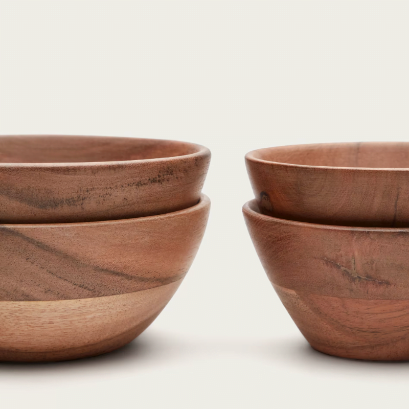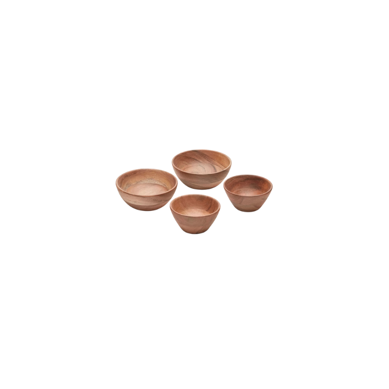 Lot de 4 bols Ercilia grand et petit format en bois d’acacia.
