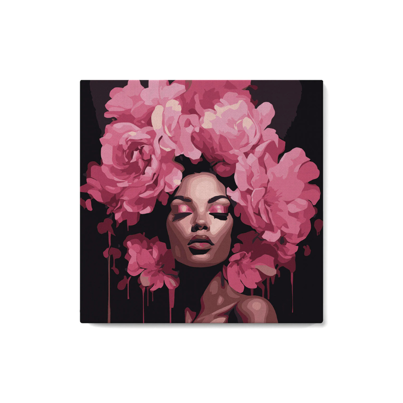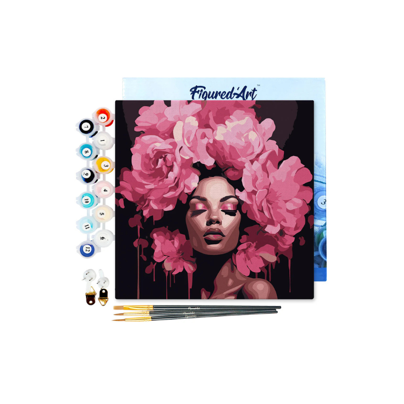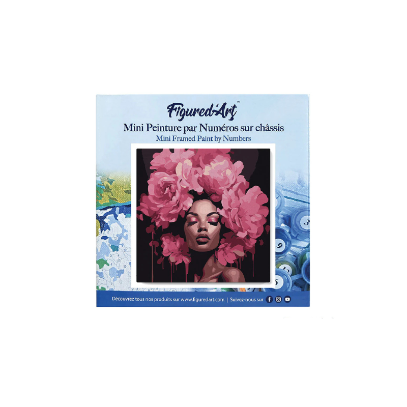 Mini Peinture par Numéros 20x20cm avec cadre Femme aux cheveux de pivoines
