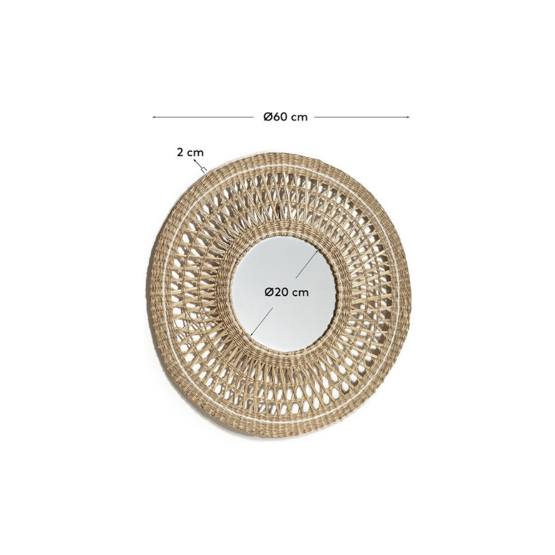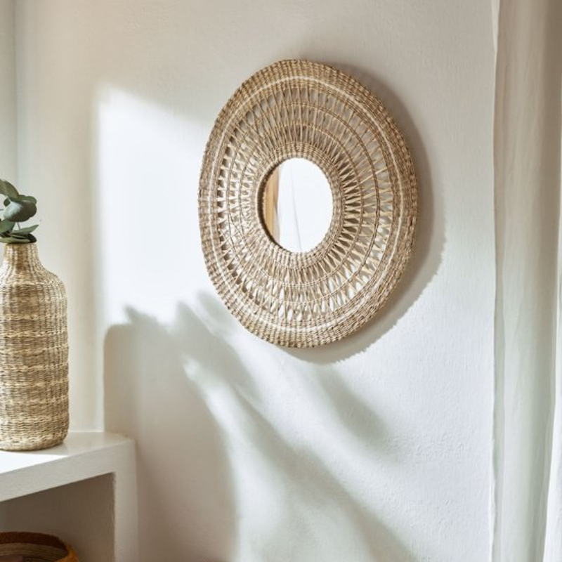 Miroir Verenade en fibre naturelle, finition blanc naturel Ø60 cm