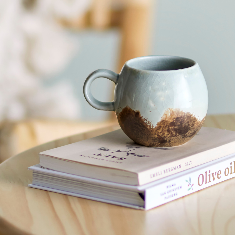 La Tasse Paula de Bloomingville est faite de grès et émaillée dans des tons bruns et bleus qui se complètent et ajoutent de la profondeur au design. La poignée offre une prise confortable, rendant la tasse à la fois pratique et élégante. La nature de l’émail peut entraîner des variations de couleur, rendant chaque tasse unique.