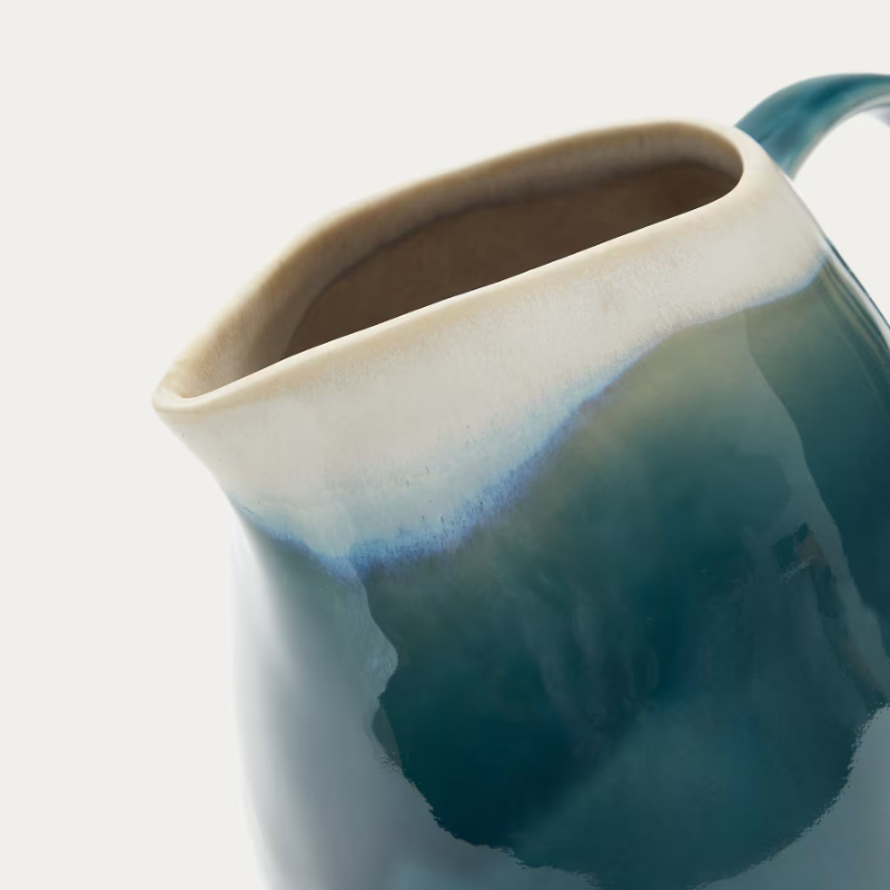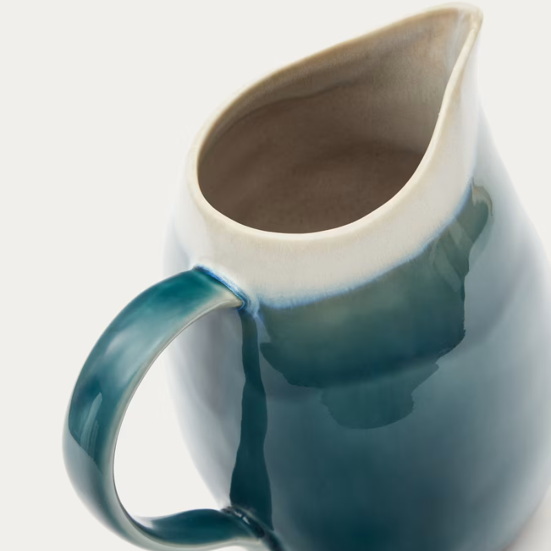 Pichet en céramique de couleur bleue et blanche d’une capacité de 500 cl.