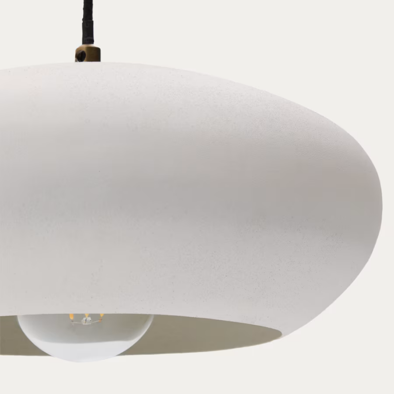 Plafonnier en métal avec finition effet terre cuite blanche.