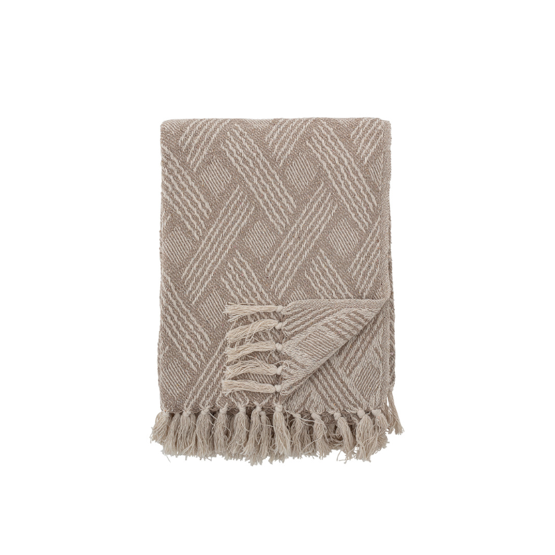Le plaid Ghina de Bloomingville est un magnifique plaid en coton recyclé. Le plaid est tissé avec des diagonales estampées de couleur naturelle et des bords frangés. Son coloris lui donne de nombreuses possibilités d’association.