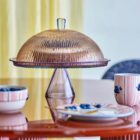 Le plat à gâteau avec cloche Tayo séduit par son design raffiné et ses finitions délicates. Son coloris lumineux est sublimé par de fines cannelures verticales qui apportent relief et élégance à l’ensemble. Doté d’une base conique haute et d’un couvercle en forme de cloche, il se décline dans des tonalités douces et harmonieuses, pour une présentation aussi esthétique que soignée. À la fois pratique et décoratif, il est idéal pour servir et mettre en valeur vos pâtisseries, tout en apportant une touche sophistiquée à votre table ou à votre intérieur.