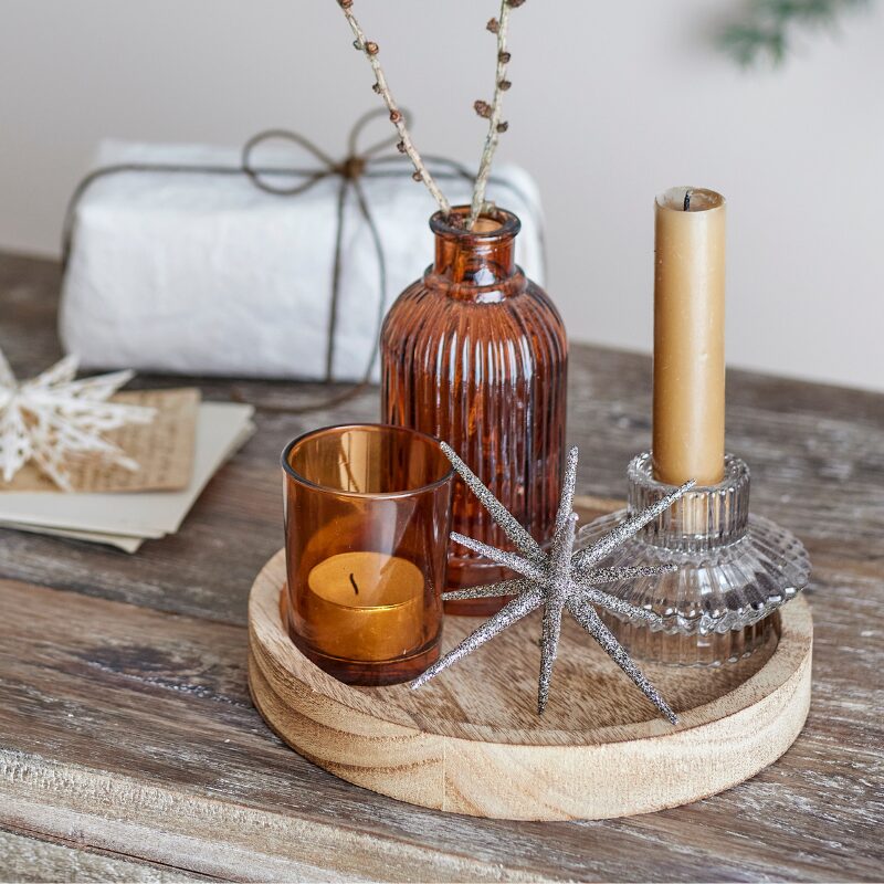 Plateau Sanga avec photophore en verre
