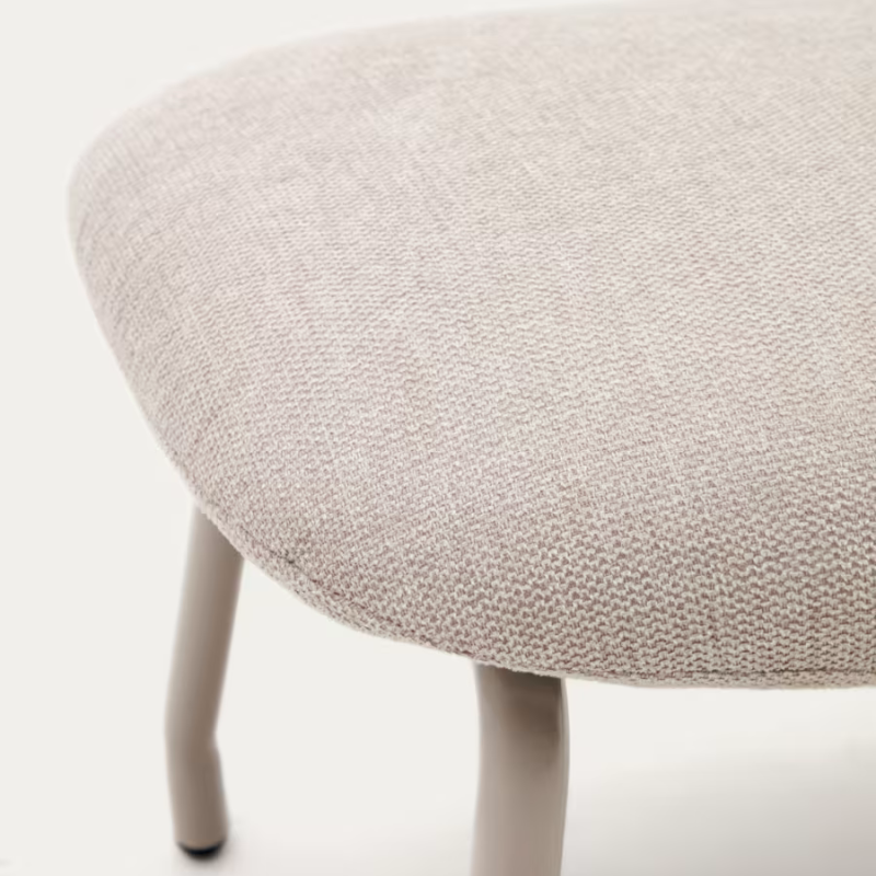 Repose-pied Belina en chenille beige avec repose-pied en acier avec finition blanche.