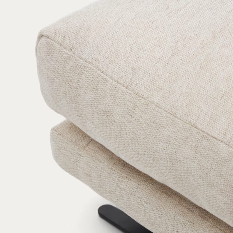 Repose-pieds Veliro en chenille beige avec pieds en acier finition noire 85×90 cm