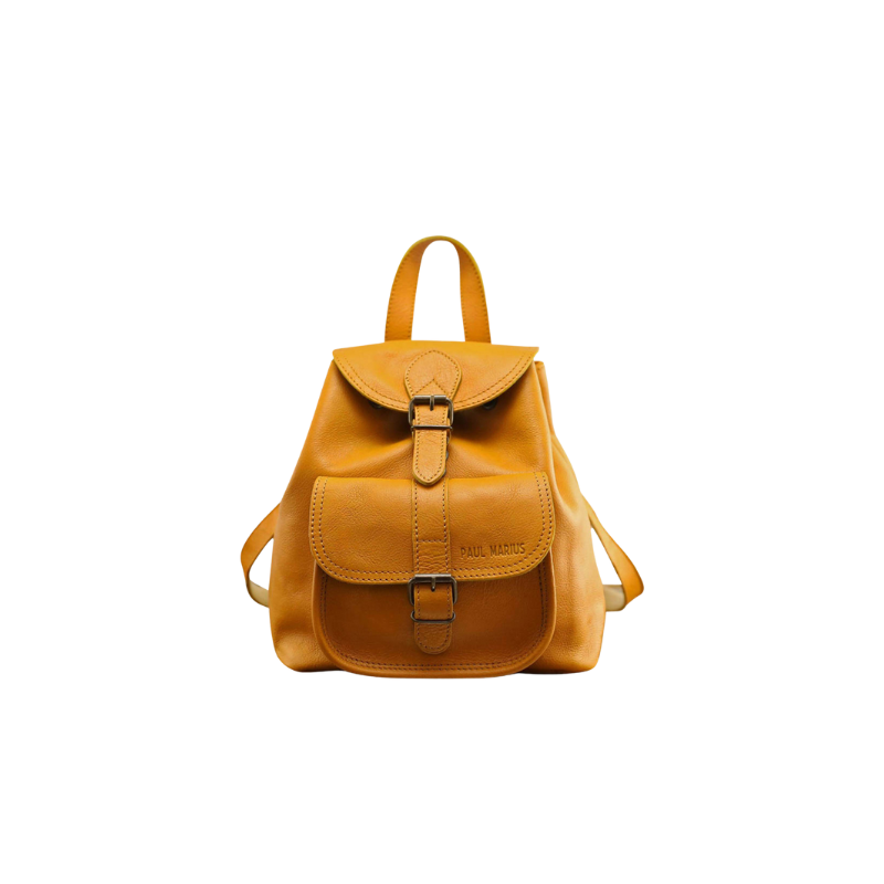 Petit sac à dos en cuir Safran pour femme icônique de la Maison Paulmarius. Une création historique, proposée en différents coloris et éditions limitées.