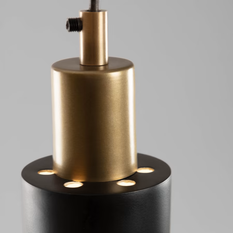 Le métal et ses finitions sont en vedette dans ce design. D’un côté, l’extérieur de l’abat-jour noir met en valeur le détail décoratif dorée. De l’autre côté, son intérieur blanc reflète mieux la lumière.