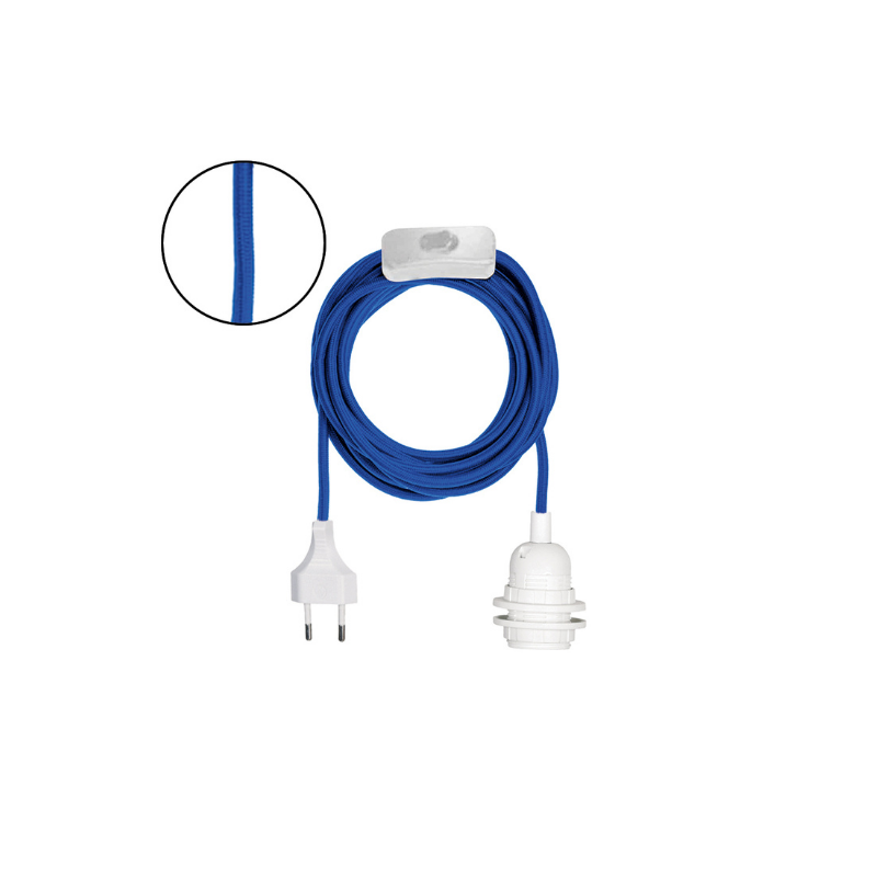 Suspension douille baladeuse blanche 400cm avec câble tissé prise bleu