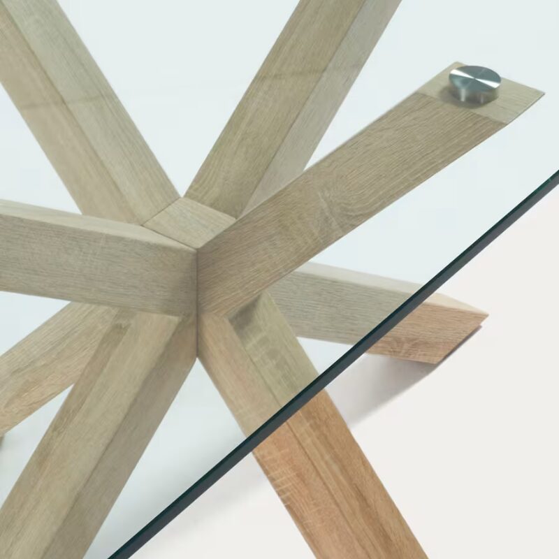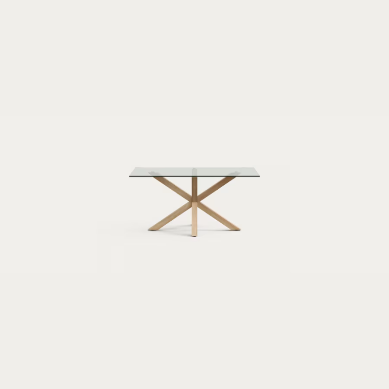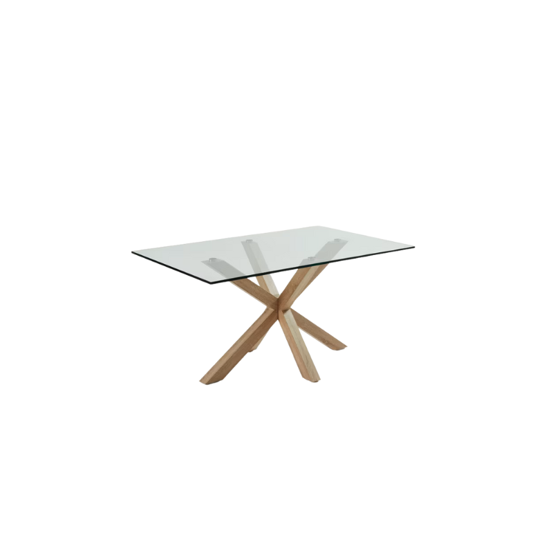 Table Argo en verre – pied en acier effet bois 160×100 cm