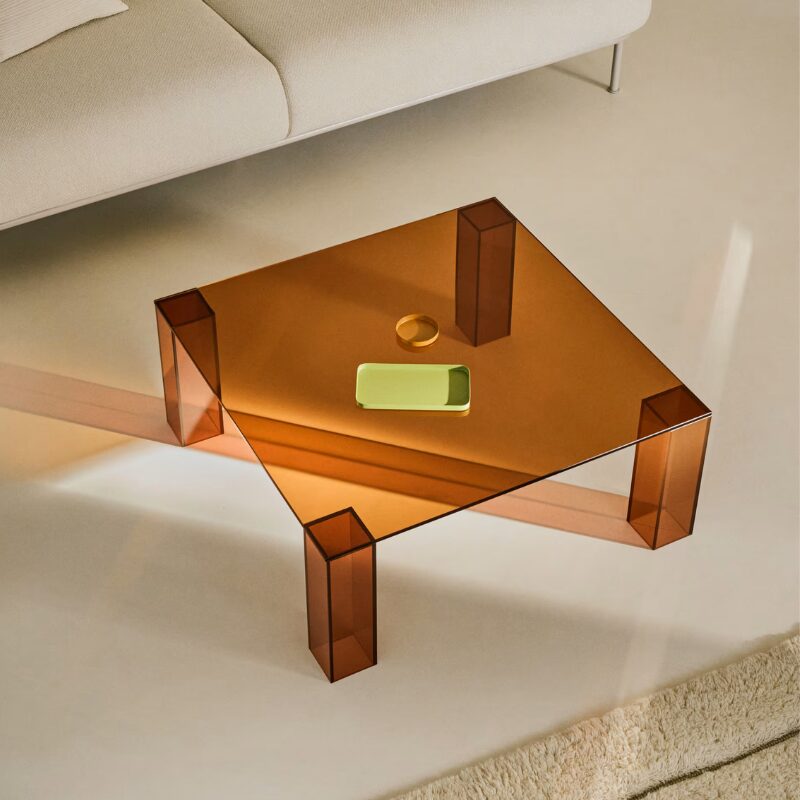 Table auxiliaire Adularia en verre trempé marron 85×85 cm