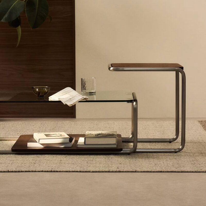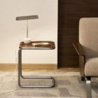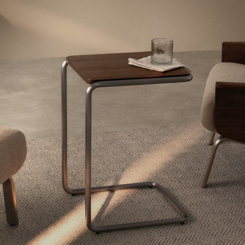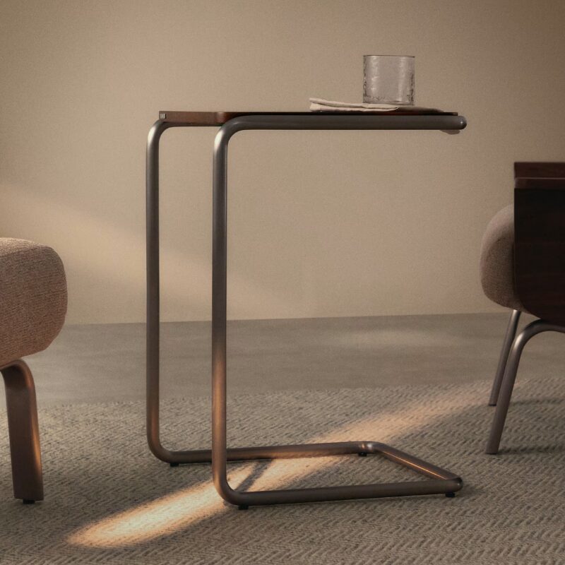 Tarsel revisite l’élégance mid-century avec un regard contemporain, qui allie harmonieusement fonctionnalité et esthétique sophistiquée. Son plateau en placage de noyer de 0,6 mm d’épaisseur à la finition foncée contraste avec la structure tubulaire en acier inoxydable à effet brossé, apportant une touche de modernité et de raffinement. Elle peut être associée à la table basse de la même collection pour former un ensemble de tables gigognes, élargissant ainsi les possibilités d’utilisation et s’adaptant à votre mode de vie et à la disposition de votre salon. Pensée pour un usage quotidien, elle est dotée de stabilisateurs dans la base, qui permettent de compenser les éventuelles irrégularités du sol, assurant ainsi stabilité et confort sur toutes les surfaces.