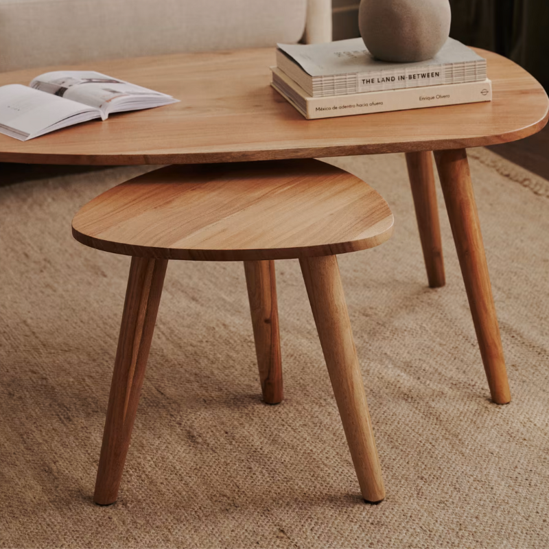 Table basse Eluana en bois d’acacia avec finition naturelle Ø110×60 cm (D)
