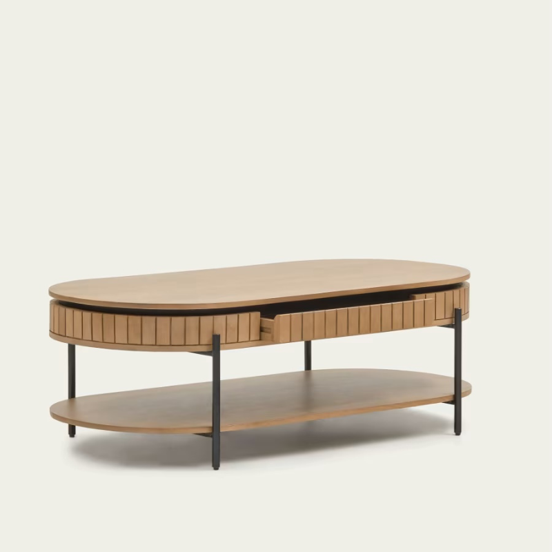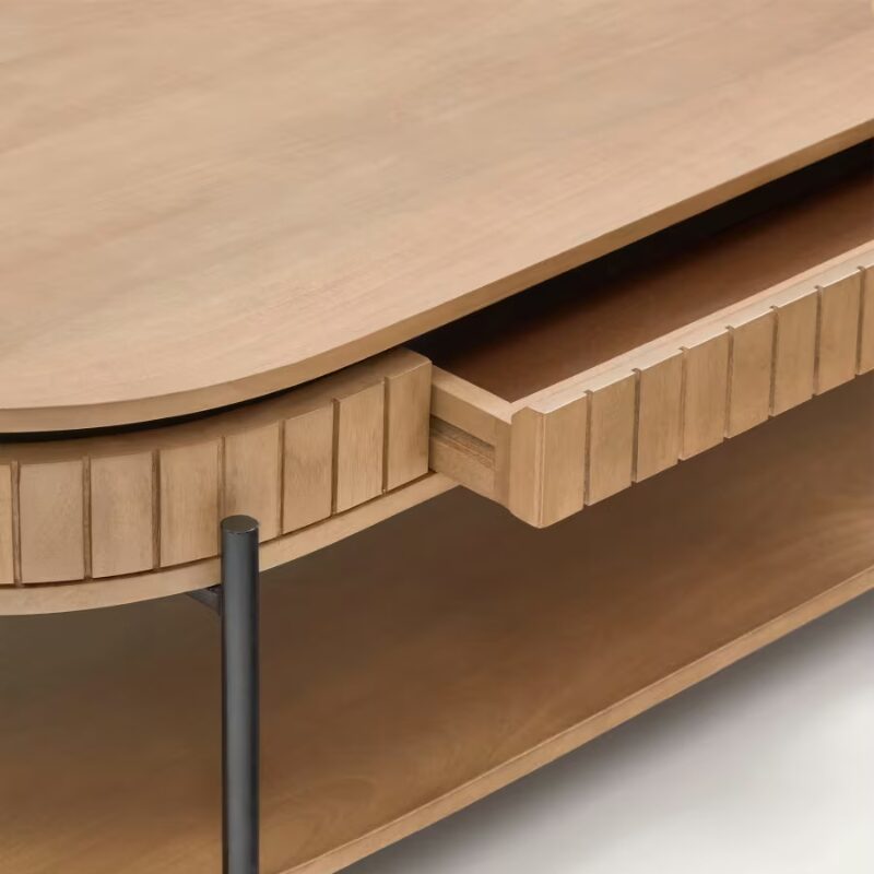 Table basse Licia 1 tiroir en bois de manguier et métal peint en noir 130×65 cm