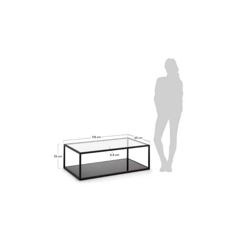Table basse avec plateau et tablette en verre trempé, plus résistant que le verre ordinaire