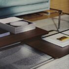 Tarsel revisite l’élégance mid-century avec un regard contemporain, qui allie harmonieusement fonctionnalité et esthétique sophistiquée. Le plateau en verre trempé confère un aspect léger à la structure tubulaire en acier inoxydable avec effet brossé, tout en ajoutant une touche de modernité et de raffinement. Le contraste avec les plateaux en placage de noyer de 0,6 mm d’épaisseur en finition foncée renforce la richesse des matériaux de la collection, ajoutant de la profondeur et de la chaleur à tout espace. Cette table se distingue par la polyvalence de ses plateaux, qui peuvent être glissés en douceur sur la base et utilisés séparément, soit sur la table elle-même, soit sur d’autres surfaces. Ceci en fait une pièce dynamique et polyvalente, capable de s’adapter aux différents besoins et moments de la journée.