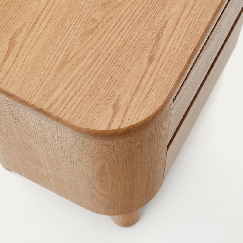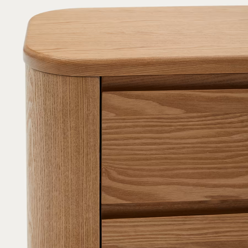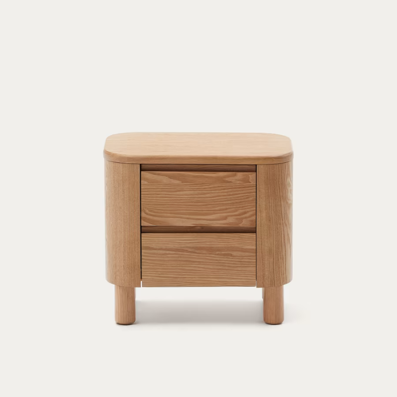 Table de nuit en contreplaqué de frêne et pieds en bois massif de frêne.