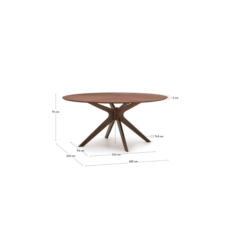 Table Naanim en placage de noyer et pieds avec finition noire 180×110 cm