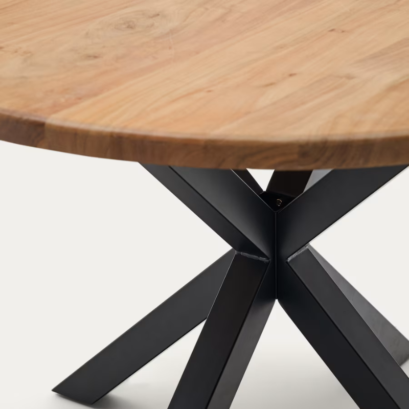 Table Argo ronde en mélaminé naturel et pieds en acier finition noire