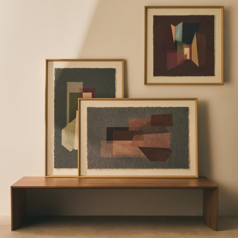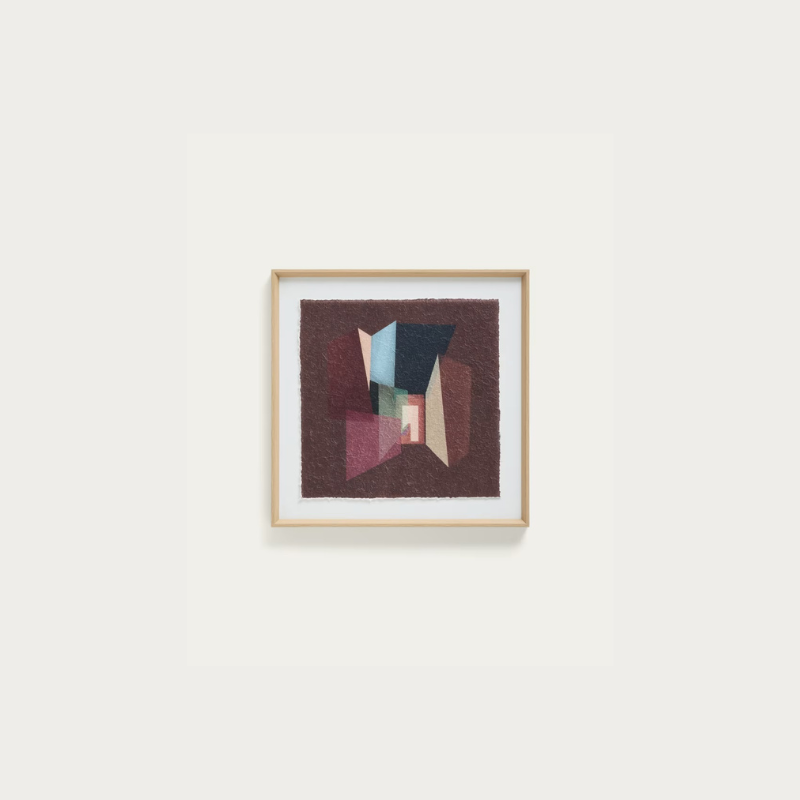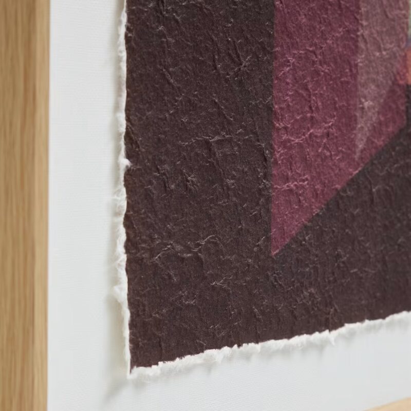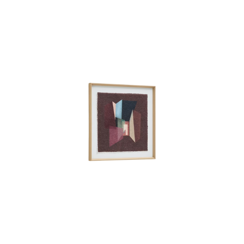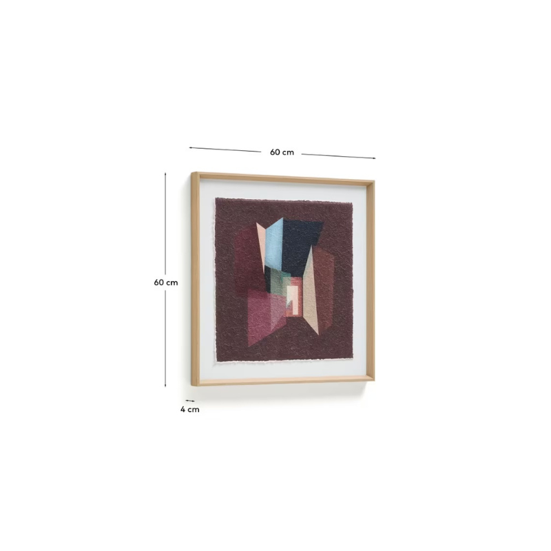 Ce tableau s’inspire du style cubiste et de l’architecture du milieu du siècle dernier. Il apporte de la profondeur et du caractère à tout espace grâce à la combinaison de formes géométriques et d’une palette de tons gris et bordeaux. Dans ce modèle, l’architecture est déconstruite et synthétisée pour la refléter dans une pièce artistique unique, où la superposition des plans et le jeu des transparences créent un effet visuel qui invite à la contemplation et ajoute une touche de sophistication contemporaine. Imprimé sur du papier recyclé, chaque détail et chaque texture rehaussent la qualité artistique de l’œuvre. Le cadre aux lignes épurées apporte une légèreté visuelle et permet à l’œuvre de s’imposer, tout en s’intégrant facilement à différents styles de décoration.