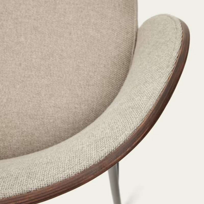 Trois matériaux dans une seule collection ? Challenge relevé, et avec un résultat de grande qualité ! Eamy allie placage de frêne, tissu et métal dans un design parfait pour ajouter du style à tous vos repas.