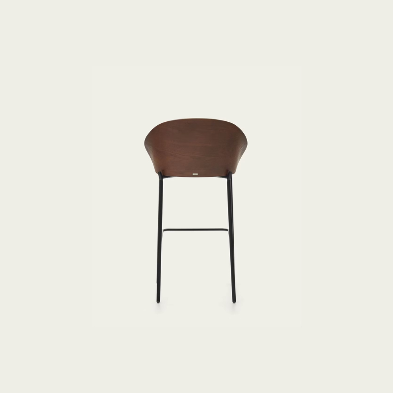 Tabouret avec dossier en placage de frêne finition couleur wengué.