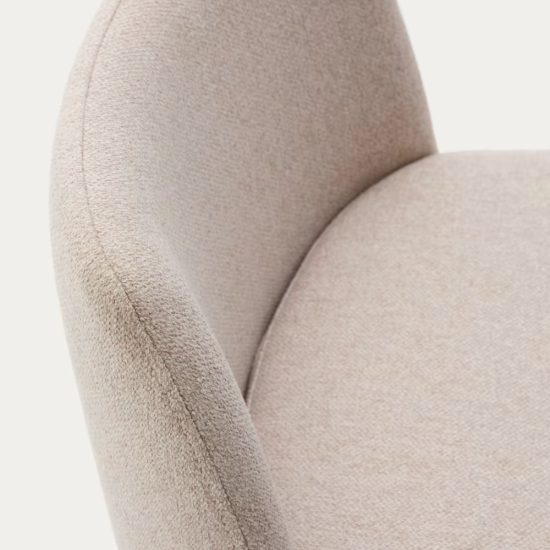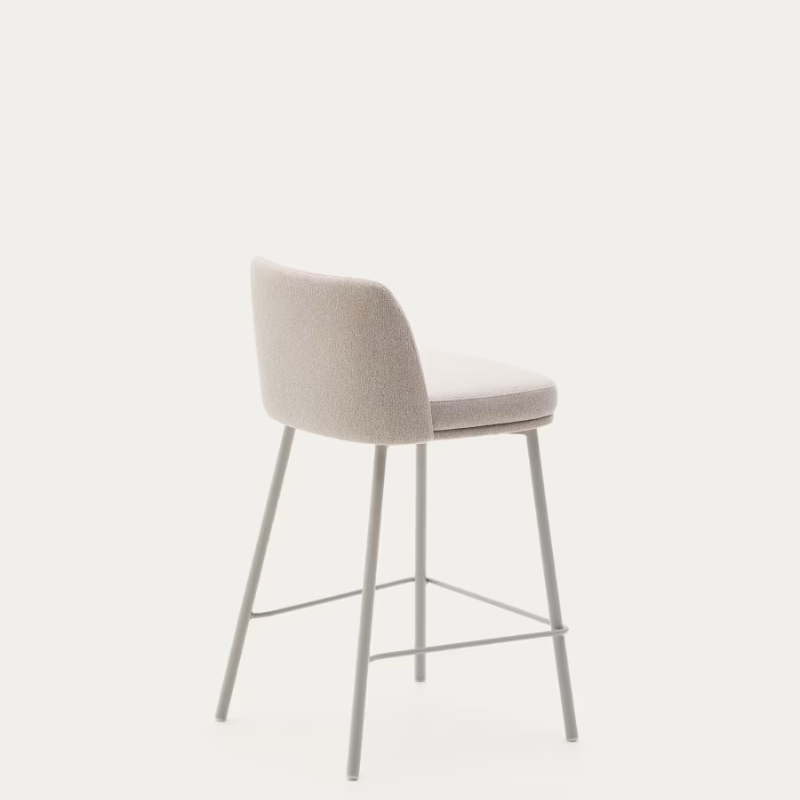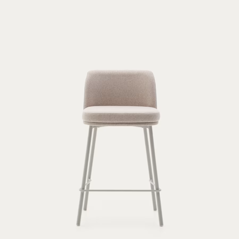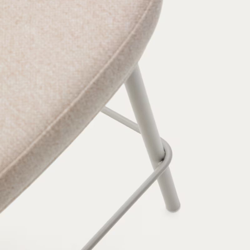 Tabouret Minami en chenille beige avec pieds en acier finition beige, hauteur 65 cm