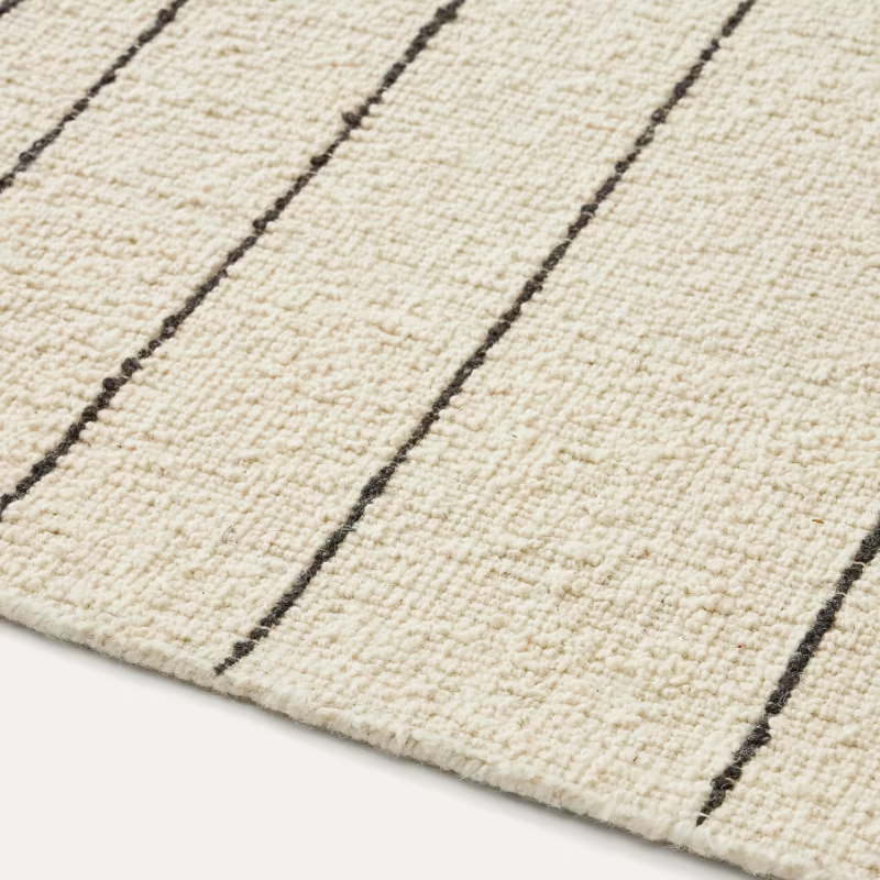 Tapis Micol en laine beige et rayures noir 160 x 230 cm.
