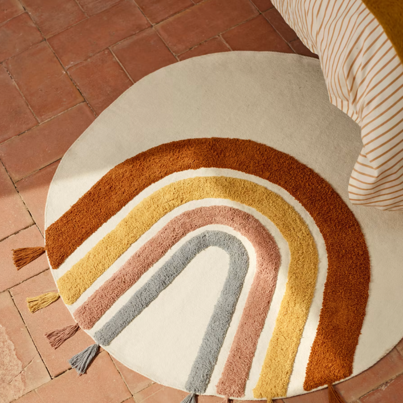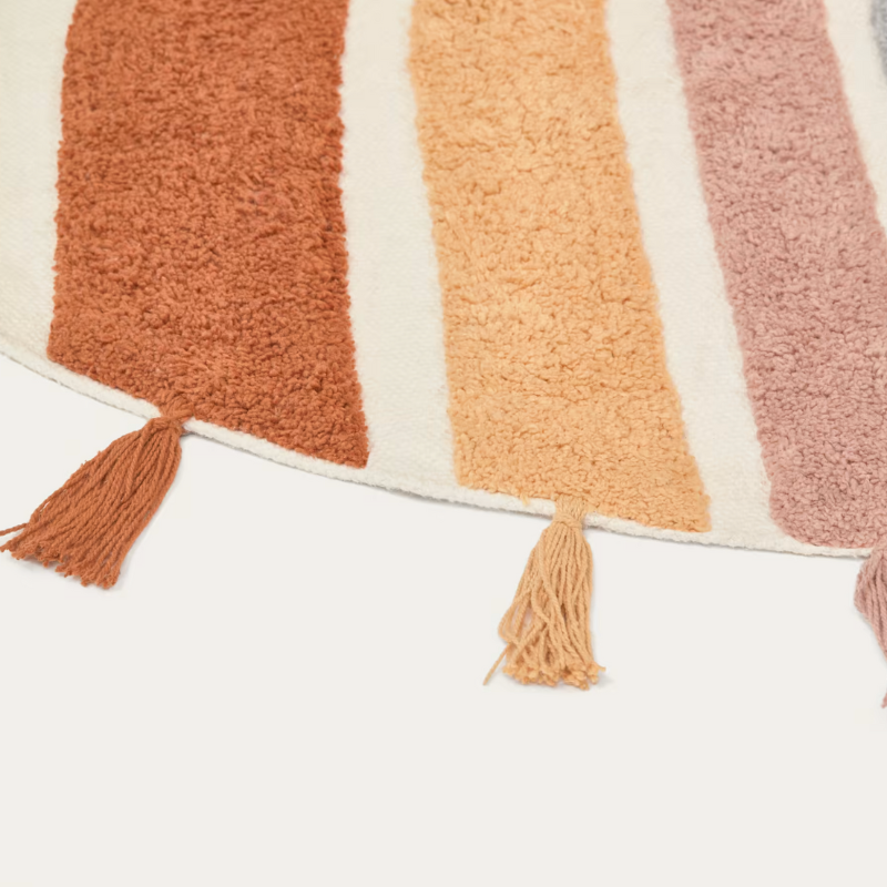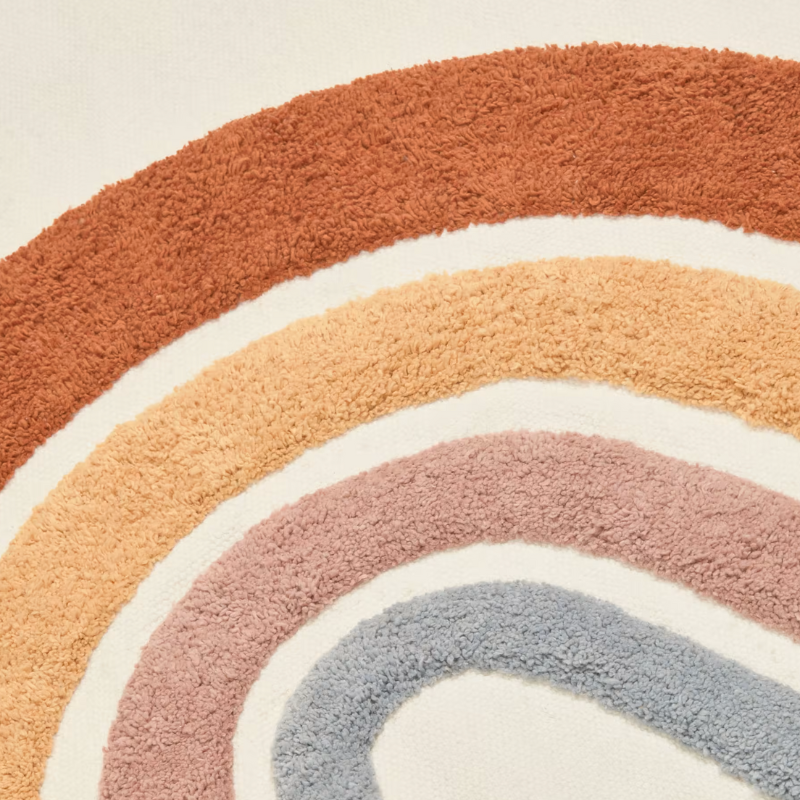 Toucher doux et relief en forme d’arc-en-ciel avec franges.
