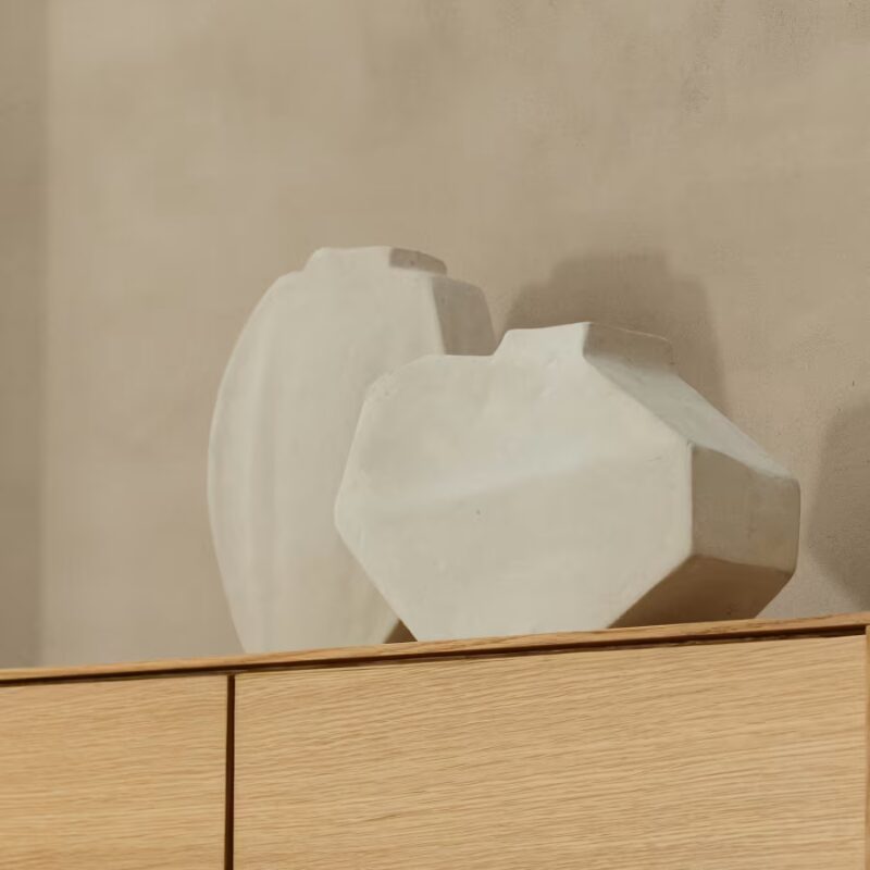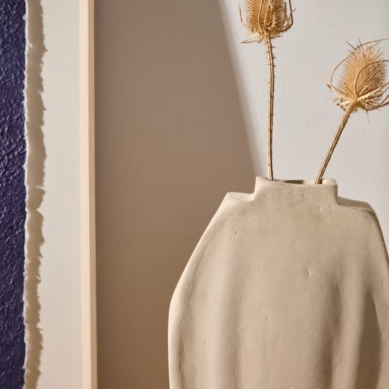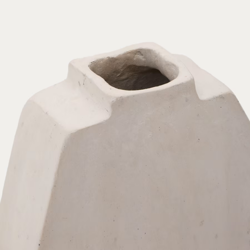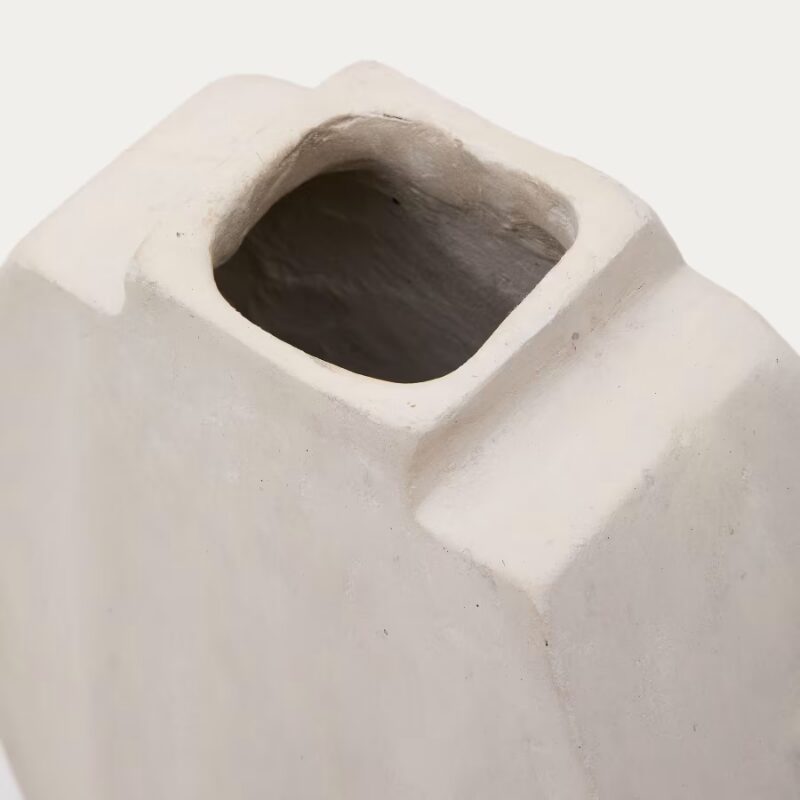 Ce vase en papier mâché se distingue par son design minimaliste et ses lignes géométriques. Sa forme allongée et anguleuse lui confère un caractère contemporain et sculptural qui apportera une note de modernité à votre décoration.