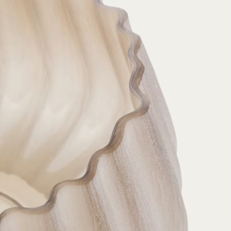Ce vase en verre se distingue par ses lignes verticales subtiles, qui évoquent l’élégance et la symétrie. Son ton beige fumé et sa forme allongée en font une pièce raffinée, parfaite pour les intérieurs sophistiqués et chaleureux.