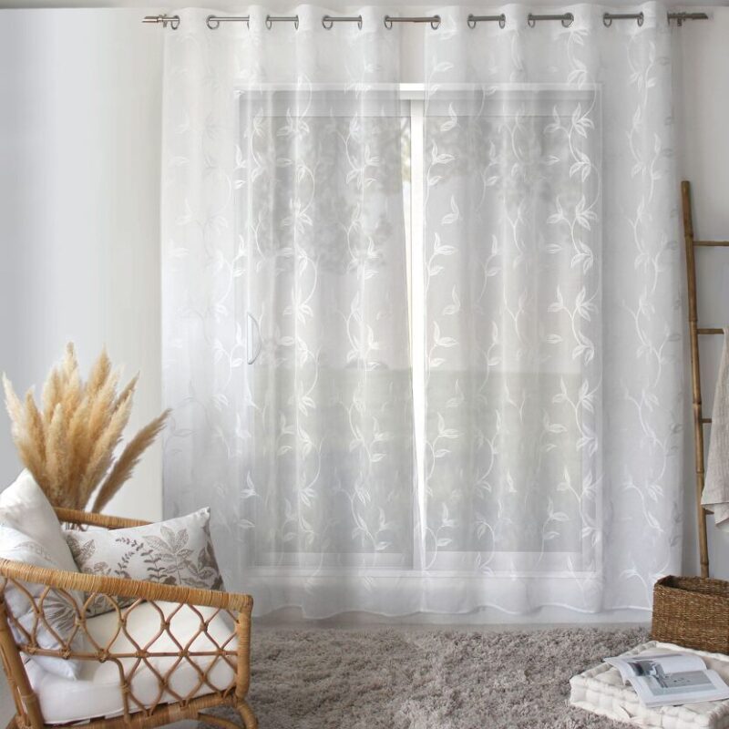 La collection Natura invite une atmosphère douce et naturelle dans votre intérieur. Ce voilage délicatement brodé de feuillage crée une ambiance apaisante tout en sublimant vos fenêtres avec finesse. Confectionné en étamine, il offre un tombé souple et aérien et laisse entrer la lumière en douceur, pour une pièce lumineuse et chaleureuse. Grâce à sa finition à œillets métalliques argentés (Ø 4 cm), son installation est simple et rapide, compatible avec toutes les tringles standards. Facile d’entretien, il est lavable en machine à 30 °C maximum.